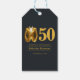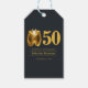Celebrate a milestone in timeless style with this elegant 50th birthday Thank You gift tag. Featuring a luxurious black background and a bold golden tuxedo graphic, the design pairs classic sophistication with modern simplicity. The striking “50” detail sets the tone for a refined evening, while party information is displayed in a graceful serif font for a polished finish. Perfect for a formal birthday celebration, black-tie event, or upscale soirée.