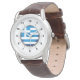 Men's Greece Flag Classic Brown Leather Watch Armbanduhr