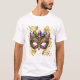 Perfect to wear to your Mardi gras parties, this men's t-shirt is shown in white with gold stars and a Mardi gras mask print.