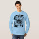 Mens Modern Long Sleeve Tiger Face Light Blue T-Shirt