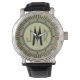 Elegante und klassische, saubere und einfache, kundenspezifische mit Monogramm Uhren für den besonderen Mann auf Ihrer Geschenkliste. Klassische, aber moderne Stil rot und schwarz Hash markiert auf militärische Oliven Camouflage grün und khaki Gesicht. Fett monogramm Initialen im Art Deko Gatsby Stil für die anspruchsvollen Herren — klicken Sie auf Anpassen, um die Größe, den Stil oder die Farben des Schriftartes zu ändern. Neue Monogramm-Uhren sind ein personalisiertes Geschenk für Geburtstage, Jubiläum, Abschluss, Ruhestand, Hochzeitsfeier, Feiertage und andere Meilensteine.