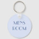 Schlüsselanhänger mit dunkelblauem Text auf blauem Hintergrund: Mens Room.