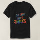 Das "Slink in Smile." T - Shirt-Design zeichnet sich durch eine lebendige, mehrfarbige Textgrafie mit einem spielerischen, skurrilen Schriftart aus. Die Phrase "Slink in Smile" ist in einem großen, kühnen Schriftart geschrieben, in dem die Briefe kurvig und fließend sind und ein Gefühl von Bewegung und Freude hervorrufen. Die Farben, die im Design verwendet werden, sind hell und fröhlich, was das positive Gesamtbild des Shirts weiter steigert.