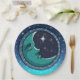 Blauer Halbmond mit dem Gesicht eines schlafenden Mannes in einem Sternenhimmel. Ein Teil seines Gesichts wird von einem strahlenden weißen Stern beleuchtet. Das Design ist in einem blauen Kreis mit kleinen weißen und blauen Punkten in Set gehalten. Der Hintergrund ist ein Farbverlauf dunkel bis hellblau mit weißen Sternen.