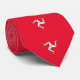 Flagge der Insel Man. Die Fahne der Isle of Man, oder die Fahne von Mann (Manx: brattagh Vannin), ist eine Triskelion, bestehend aus drei gepanzerten Beinen mit goldenen Sporen, auf einem roten Hintergrund. Es ist seit 1931 die offizielle Fahne von Mann und basiert auf dem Manx-Wappen aus dem 13. Jahrhundert. Die drei Beine sind in Manx als jede Baumkassyn ("die drei Beine") bekannt. Das Triskelion ist ein altes Symbol, das von den Mykenäern und den Lykiern benutzt wird. Es ist nicht sicher, warum das Symbol ursprünglich auf der Isle of Man adoptiert wurde. Vor ihrer Adoption im Jahr 1931 war die offizielle Flagge der Insel Man die Gewerkschaft Flag.