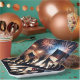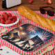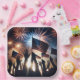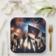 Menschenmenge mit amerikanischen Flaggen und Feuer Pappteller