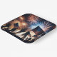 4. Juli Menschenmenge Silhouette mit amerikanischen Flaggen, die Feuerwerke beobachten