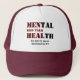Mens Mental Health Trucker Hat. Eine motivierend TRUCKER-GAP zur Förderung der psychischen Gesundheit von Männern und zur Ermutigung von Männern zum Reden. Das Design zeigt die Worte MENTAL HEALTH kombiniert mit MÄNNERN, DIE GESUNDHEIT SPRECHEN. Es gibt einen auf Ecclesiastes basierenden Platzhalter-Schriftzeichen-Vers, der CUSTOMIZABLE ist, sodass Sie mit Ihrem Namen, Ihrer Organisation oder dem Text Ihrer Wahl personalisieren können. Das wäre ein großer Vorteil, wenn man auf Männerkonferenzen, Konferenzen zur psychischen Gesundheit, Überläufern der psychischen Gesundheit und für Organisationen der psychischen Gesundheit usw. Werbeartikel vergibt oder verkauft. Andere Farben sind verfügbar.