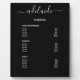 Passen Sie diese schwarze Frisur-Stylistin-Salon-Service-Menüplakette an, um auf einfache Weise eine Preisliste für Ihre Dienste zu erstellen. Personalisieren Sie mit Ihrer Salon-Stylist-Signatur in einer eleganten, weißen Schrift Typografie. Legen Sie sie auf Ihren Tisch, das Regal oder den Schalter. Ideal für Friseur, Nagelstudios, Kunsthandwerksservice, Schönheitsbars, Wellness-Center, Ästhetik und vieles mehr. Verwenden Sie das Tool Anpassen, um Schriftart- und Hintergrundfarben zu ändern. Kontaktieren Sie uns, wenn Sie Hilfe benötigen: yourstyle@pgco-designs.com.