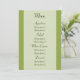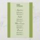 Dieses spezielle Hochzeitsmenü ist ein Muss, wenn Sie planen, am Empfang zu Abend zu essen. Diese Karte des Hochzeitsmenüs ist mit dunkelgrünem Text auf grünem Hintergrund und einem großen weißen Farbton auf der Rückseite ausgestattet. Wir bieten auch dieses Hochzeitsmenü in einer schmalen Version an. Karo in der White Daisy Wedding Kollektion auch die kundenspezifischen Platzkarten, Gastgeschenk Hochzeiten-Etiketten und andere feine Produkte aus.