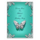 Menü Dinner Card Silver Aquamarin Blue Butterfly