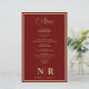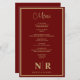 Lassen Sie Ihre Probe zu einem kulinarischen Meisterwerk mit unserem Darks Red and Gold Wedding Monogram Customized Probe Dinner Menu wachsen. Dieses exquisite Menü schmeichelt nicht nur den Geschmackssinn, sondern verleiht auch Ihren Hochzeitsfeiern eine Touch Eleganz. Unser personalisiertes Dinner-Menü wurde mit viel Raffinesse gestaltet und bietet eine tiefe, reiche dunkelrote Farbe, die mit luxuriösen Golddetails besticht. Das elegante Design präsentiert Ihr individuelles Monogramm und fügt eine personalisierte Touch hinzu, die den Ton für einen unvergesslichen Abend Set. Egal ob Sie eine intime Ansammlung oder eine aufwändige Affäre beherbergen, unser schlichtes und raffiniertes Hochzeitsmenü ist für Sie da. Jedes Detail ist sorgfältig gepflegt, um Ihr Hochzeitssmotiv zu ergänzen und so ein zusammenhängendes Erlebnis vom Probe-Dinner bis zum Empfang zu schaffen. Ideal für Verlobungsfeiern, Probe-Dinners oder Hochzeitsfeiern. Unser "Dark Red and Gold Wedding Monogram Customized Probe Dinner Menu" bietet eine Touch an Opulenz für jede Veranstaltung. Machen Sie jeden Moment unvergesslich mit einem Menü, das Ihren tadellosen Geschmack und Stil widerspiegelt.