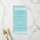 Mint Spitzen Hochzeit Dinner Menü Vorlage mit weißen Spitzen Dekor und Monogramme auf der Rückseite. Sie können alle Textfelder personalisieren.