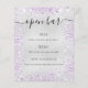 Ein silbernes Imitat mit lila, violettem Imitat Glitzer, Glitzern. Mit dem Text: Bar öffnen. Personalisieren Sie Ihr Menü und fügen Sie Ihr Bar hinzu.