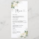 Weiße Rosen florale Hochzeitsfeier Menü. Dieses stilvolle und elegante Brautduschen lädt mit herrlich handgemalten weißen Rosen Floral ein. Finden Sie passende Artikel in der White Roses Floral Collection.