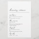 Budget Einfaches Skriptabendmenü. Ein günstiges Preis-Leistungs-Verhältnis von 5,5" x 8,5", auf einem eleganten 110 lb LINEN Stock - für ein luxuriöses Ambiente zu einem guten Preis-Leistungs-Verhältnis, perfekt für Menüs, Einladungen und Programme etc. Diese Alternative zur Budgetgröße ist auch bei anderen Papiervorschlägen verfügbar. Der SEMI-GLOSS 110 lb Kartenvorrat ist etwa so dick wie eine Postkarte, funktioniert also auch bei Einladungen gut. Das FELT 100 lbs Papier ist bufffarben, NICHT weiß, fügt also eine rustikale Touch hinzu. Das Papier MATTE 80lbs ist hell weiß, für knackigen Druck, ideal für Ihre Menüs und Programme, während das SATIN 80lbs Papier dünn und leicht, ideal für Gehäuse. BITTE BEACHTEN SIE, DASS DIE OPTIONALEN UMGEBUNGEN ETWA EIN WENIG GRÖSSER IN DER GRÖSSE VON 6,75" x 9" sind. Ein stilvolles Set-Skript für die Überschriften. Personalisieren Sie einfach die Erholung des Textes auf Ihre eigenen Details, die Alternativen für Ihre veganen oder vegetarischen Optionen beinhaltet.