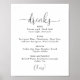 Das extravagante Drehzeichen dieses Hochzeitsgetränkesmenüs eignet sich perfekt für eine moderne Hochzeit. Das einfache und elegante Design zeichnet sich durch klassische und extravagante Schriftzeichen in Schwarz und Weiß aus.