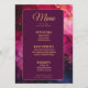 Die Menükarte aus der Sammlung "Celestial Elegance: The Marble Symphony", eine raffinierte und raffinierte Ergänzung zu Ihrem Hochzeitsempfang. Auf der Vorderseite bietet die Karte eine beeindruckende marmorinspiriert Kulisse mit elegantem Winkeln in Weiß und Weiß und schafft so eine luxuriöse Leinwand. Oben wird die Beschriftung "Menü" in fettgedruckter, eleganter Typografie angezeigt, die den Ton für ein geschmackvolles Essen absteckt. Die Namen des Paares und das Hochzeitsdatum werden hervorgehoben dargestellt, was dem Design eine persönliche Touch verleiht. Unterhalb des Kopfes wird eine sorgfältig ausgewählte Auswahl an Speisen, Vorspeisen, Vorspeisen und Desserts präsentiert, die jeweils sorgfältig beschrieben werden, um den Vorlieben des Ehepaares und den kulinarischen Angeboten des Abends Rechnung zu tragen. Die Karte dreht auf der Rückseite und setzt sich mit einem lila dunklen Hintergrund fort, der mit demselben Marmorbild geschmückt ist, wodurch eine nahtlose und raffinierte Präsentation entsteht. Oben wird der Titel "Drinks" elegant ausgestellt und lädt die Gäste dazu ein, die Auswahl an Getränken zu erkunden. Darunter befindet sich eine sorgfältig ausgewählte Getränkekarte, die von Cocktails über erlesene Weine bis hin zu erfrischenden alkoholfreien Getränken reicht. Jede davon wird beschrieben, um die Erwartungen der Gäste zu erhöhen. Diese Karte mit der zeitlosen Schönheit der Sammlung "Celestial Elegance: The Marble Symphony" verbindet moderne Eleganz mit himmlischem Charme und sorgt dafür, dass jedes Detail Ihrer Hochzeitsfeier mit Eleganz erfüllt wird. Diese Karte lädt die Gäste ein, die kulinarischen Köstlichkeiten Ihres besonderen Tages zu genießen und dabei das raffinierte und himmlische Thema zu reflektieren, das Ihre Feier bestimmt.