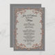 Chic graues Hochzeitsmenü mit Grafik eines pfirsich- und elfenbeinfarbenen Blume Garland Rahmen. Eine schöne Ergänzung zu den Hochzeitstischen. Personalisieren Sie den Text für Ihren Empfang.
