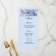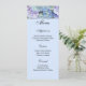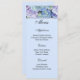 Die Menükarte wird auf weißem Grundpapier mit hellblauer Hintergrundfarbe und einem farbigen Hydrangeas-Druck angezeigt. Skript und Standardtext in hellschwarz. Passen Sie die Menüpunkte an Ihre, indem Sie auf Anpassen Button, suchen Sie nach rechts und finden Sie geeignete Felder, um Ihre Informationen zu ändern. Wir wünschen Ihnen viel Spaß beim Hochzeitsfest.