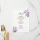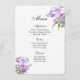 Die Menükarte wird auf weißem Grundpapier mit einem hübschen lila Orchideenprint angezeigt. Skript und Standardtext in schwarz. Passen Sie die Menüelemente an, indem Sie auf die Schaltfläche Bearbeiten anpassen klicken, suchen Sie nach rechts und suchen Sie geeignete Felder, um Ihre Informationen zu ändern.