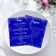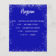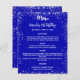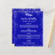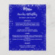 Ein königlich blauer Hintergrund. Weißer Text. Dekoriert mit Imitaten silbernen Glitzer, Glitzern. Front: Personalisieren Sie Ihren Namen, das Datum und das Menü. Zurück: Programm. Wenn Sie ein großes Programm haben, können Sie den Zeilenabstand verringern. 1 Blatt = 1 Menü, mit dem die Kante an Kante aufgedruckt ist.