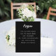 Ein klassischer schwarzer Hintergrund. Weißer Text. Front: Personalisieren Sie Ihren Namen, das Datum und das Menü. Zurück: Programm. Wenn Sie ein großes Programm haben, können Sie den Zeilenabstand verringern. 1 Blatt = 1 Menü, mit dem die Kante an Kante aufgedruckt ist.