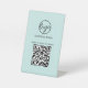 Kundenspezifisches QR Code Pedestal Sign mit Ihrem Logo und Ihrem QR Code zusammen mit Ihrem Firmennamen. Alle Designelemente sind schwarz auf türkisfarbenem Hintergrund und können im Designbearbeitungstool geändert werden. Verwenden Sie diese einfachen Schilder, um die Gäste per QR-Code zu Ihrer Speisekarte zu leiten, um eine kontaktlose Option zu erhalten. Diese QR-Code-Zeichen sind ideal zum Aufstellen von Tischen in Ihrem Restaurant / Bar / Café / Café / Café.