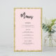 Diese individuell anpassbare Menükarte wurde für die Abstimmung mit unserer Hochzeitskollektion in Rosa und Gold Glitzer konzipiert und weist einen goldenen Glitzer auf rosa Hintergrund auf. Für eine weiter gehende Anpassung dieses Designs klicken Sie bitte auf den "CUSTOMIZE"-Button oben. Bitte beachten Sie, dass Glitzer als Druckeffekt und nicht als Glitzer gedruckt ist. Bitte kontaktieren Sie mich für weitere Fragen!