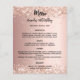 Rose Goldgradientenhintergrund. Schwarzer Text. Mit Konfetti dekoriert. Front: Personalisieren Sie Ihren Namen, das Datum und das Menü und fügen Sie Ihren Namen hinzu. Zurück: Programm. Wenn Sie ein großes Programm haben, können Sie den Zeilenabstand verringern. 1 Blatt = 1 Menü/Programm, mit der Kante bis Kante gedruckt.