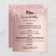 Rose Goldgradientenhintergrund. Schwarzer Text. Mit Tropfen dekoriert, tropfende Farbe aussehen. Front: Personalisieren Sie Ihren Namen, das Datum und das Menü. Zurück: Programm. Wenn Sie ein großes Programm haben, können Sie den Zeilenabstand verringern. 1 Blatt = 1 Menü, mit dem die Kante an Kante aufgedruckt ist.