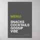 Erhellen Sie Ihre Küche mit Humor! “MENÜ: SNACKS, COCKTAILS, KLATSCH & STIMMUNG” Poster in moderner Typografie. Verfügbar in mehreren Hintergrundfarben, perfekt als Heimdekoration, Geschenke oder Küchenwandkunst.