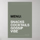 Erhellen Sie Ihre Küche mit Humor! “MENÜ: SNACKS, COCKTAILS, KLATSCH & STIMMUNG” Poster in moderner Typografie. Verfügbar in mehreren Hintergrundfarben, perfekt als Heimdekoration, Geschenke oder Küchenwandkunst.