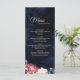 Dieses Hochzeitsmenü der Sternennacht inspiriere entweder Mitternacht-Sommerthema oder einen dunklen Winter Schnee, was es zu einem saisonal vielseitigen Design macht. Die marineblau, fast schwarz, Aquarellfarbe mit Himmelsstern oder Schneeflocken gefüllt Himmel, kombiniert mit dem Pop von minimalen rosa Blume und Kalligraphie wird sicher zu sprechen, um die Magie Ihrer Ehe Feier, unabhängig von der Zeit des Jahres.
