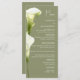 Menus for a modern wedding. Delicate calla lilies in soft green hues are depicted against a light background, creating an atmosphere of sophistication and tranquility. The design is modern, airy, and perfect for a stylish, romantic wedding.