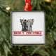 Zwei Katzen mit Feiertagskappen und Strumpf, die auf Weihnachten "Meow-y-Christmas" auf Weihnachts-Sake-Ornamente, die Sie die Form von vor der Bestellung!