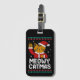 Cute festive cat in knitted look with Santa outfit and winter snow details. Perfect for holiday humor fans who enjoy cozy seasonal themes.