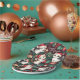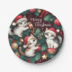 Diese Weihnachtspapiere sind perfekt für Katzenliebhaber. Sie sind mit drei bezaubernden Kätzchen ausgestattet, die Weihnachtsmannmützen tragen und mit Ornamenten spielen. Der Hintergrund ist festlich grün mit roten Beeren und goldenen Akzenten. Diese Teller bringen Ihnen eine Touch Freude und Kultur auf Ihren Weihnachtstisch.