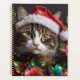 Eine niedliche Katze mit einem santa Claus-Kostüm mit Blumenhintergrund, Vintagem Design