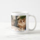 Diese Tasse kennzeichnet die Phrase "Meowy Weihnachten" in einem schwarzen handgeschriebenen Skript mit einer Weihnachtsmannmütze auf dem "M." die Rückseitenanzeigen ein LieblingsFoto mit Ihrem kundenspezifischen Text darunterliegend.
