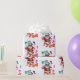 This wrapping paper design features a fun and vibrant Christmas theme. At the center, there is a cool, modern Santa Claus wearing sunglasses, sneakers, and a red outfit with colorful geometric patterns. Santa is striking a confident, dancing pose with one fist up and the other bent at his waist.