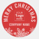 Rot und weiß Frohe Weihnachtsaufkleber personalisiert mit Firmenname und Firmenlogo für berufliches Branding .