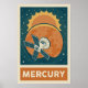 Eine Retro-Abbildung von Merkur mit einem Satelliten.
