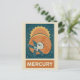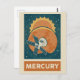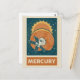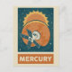 Eine Retro-Abbildung von Merkur mit einem Satelliten.