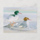 Die perfekte Postkarte, um einen Gruß an einen Vogelliebhaber oder jeden zu versenden, der die Natur, die Natur und die Natur liebt. Von einem originalen Aquarellbild des Gemeinen Merganser, auch bekannt als Goosander, am Fluss Taff in Wales. Dieser schöne Wasservogel ist ein großer Seduck. Der rätselhafte grüne Kopf des Männchens macht sie leicht zu unterscheiden. Die Ente ist bemerkenswert, weil sie einen Schwenk hat, um ihre Beute zu beherrschen. Jeder, der die Schönheit der Vögel und der Landschaft genießt, wird Liebe haben, dies zu erhalten.
