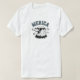 This design showcases a bold patriotic graphic printed on a clean white t-shirt. At the center is a striking black ink illustration of a fierce bald eagle head, rendered in a rough, hand-drawn style with heavy linework and textured shading for a vintage stamped look. Above the eagle, arched lettering reads “MERICA” in thick, slightly distressed block letters filled with a muted blue tone.