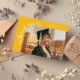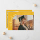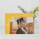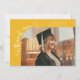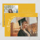 Eine merkwürdige und wunderliche Abschlussanzeige-Fotokarte mit einem Foto auf der Vorderseite und einem auf der Rückseite. Der Text sagt "Dankeschön" in merkwürdiger Handschrift mit Sternen und Konfetti. Fügen Sie den Namen des Absolventen, Informationen und eine Nachricht hinzu, um diese Karte zu personalisieren. Gelb.