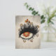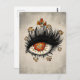 Eine seltsame Postkarte mit einer digitalen Abbildung eines weiblichen Auges mit gebrochener Iris aus Lava und langen Wimpern, die in bizarren Blume mit verworrenen Blütenblättern in einem bewölkten grauen Himmel endet.
