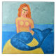 Mein funky abstraktes Gemälde einer Meerjungfrau auf einem Felsen, der auf Keramik-Fliesen gedruckt ist