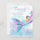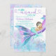 Meerjungfrau-Duscheinladungen mit einem bezaubernden Babymädchen mit hübschem aquamarinem Schwanz, der auf einem wunderschönen rosa, lila und aquamarin blauen Meerjungfrau-Schwanz und unter dem Meeresgrund schläft. Diese Babydusche-Einladung von Mermaid lässt sich leicht mit Ihren Details abstimmen.